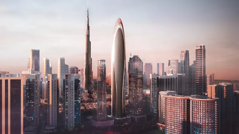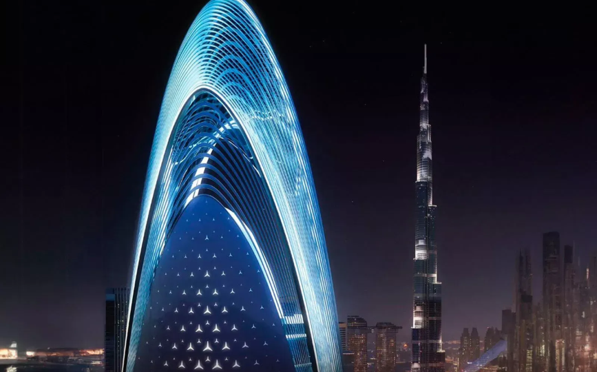 A collaboration between Binghatti and Mercedes-Benz, this visionary tower in Downtown Dubai redefines automotive-inspired architecture.